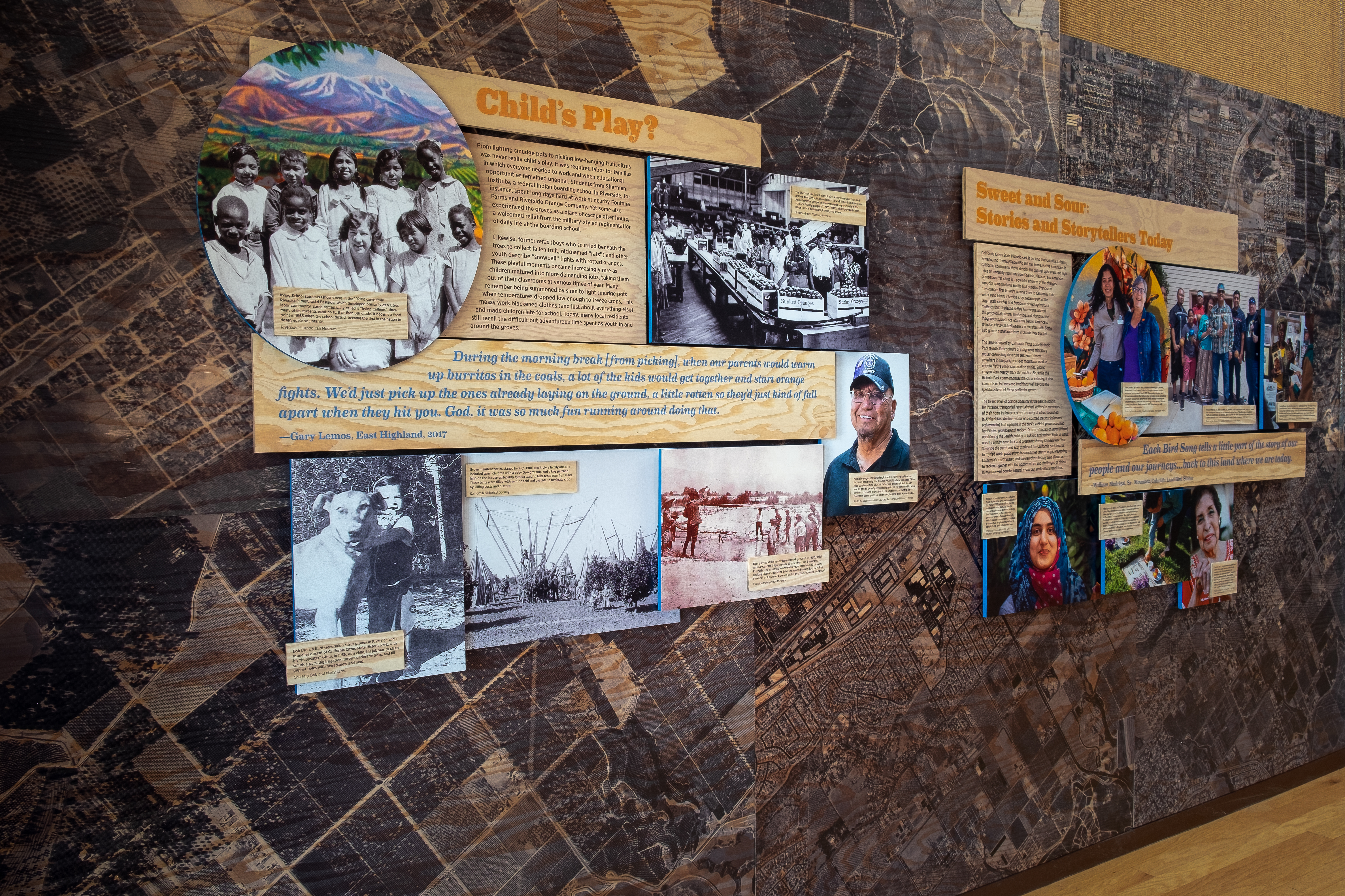 Redesign the entrance space of the California Citrus State Historic Park in Riverside, California, with a focus on highlighting the stories of past and present inhabitants.